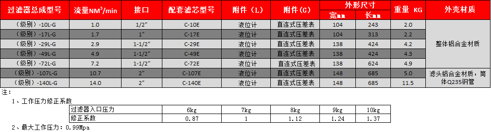 v C级 主管路过滤器 滤除:大于3μm的固态与液态颗粒;残油量不超过5PPm。